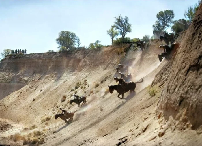 Спуск, выполненный учениками Испанской военной школы верховой езды.