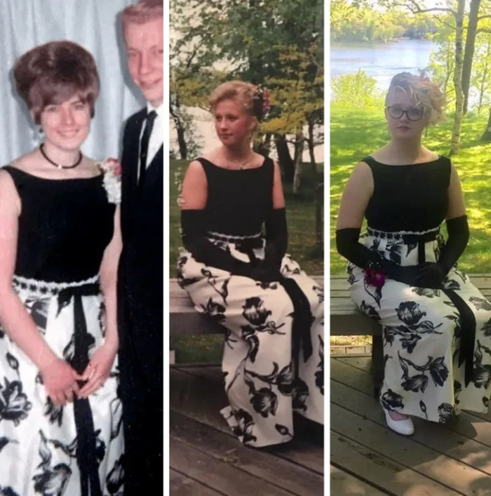 «Три поколения женщин нашей семьи в одном платье: бабушка в 1964 году, мама в 1991 и я в 2017»