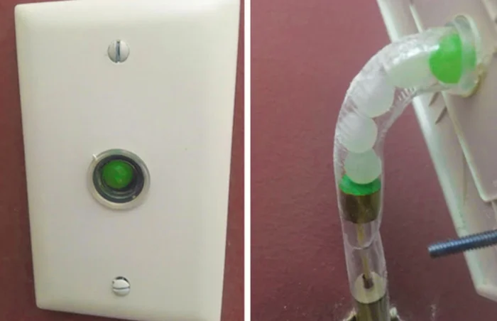 Ответ: Это детектор термитов. Их трудно заметить, поэтому в сигнализации установлен деревянный штырек, который термиты съедают. Как только конструкция сдвинется, вместо зеленого появится другой цвет — это и будет сигнал тревоги.