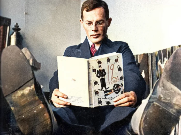 Писатель Илья Ильф читает свой роман «Двенадцать стульев», написанный в соавторстве с Евгением Петровым, 1928 год.