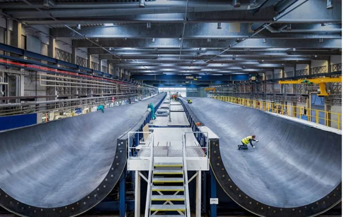 Для наглядности на фото присутствует человек: форма для лопастей ветряной турбины