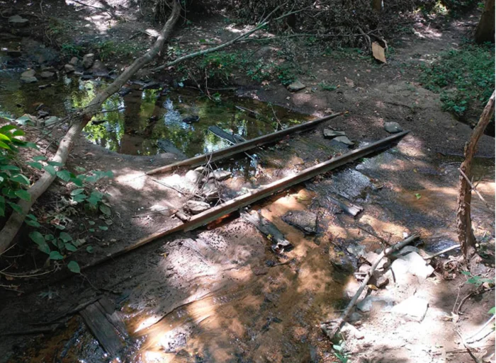 Создается впечатление, что здесь когда-то существовали железнодорожные пути. Теперь они заброшены и покрыты растительностью