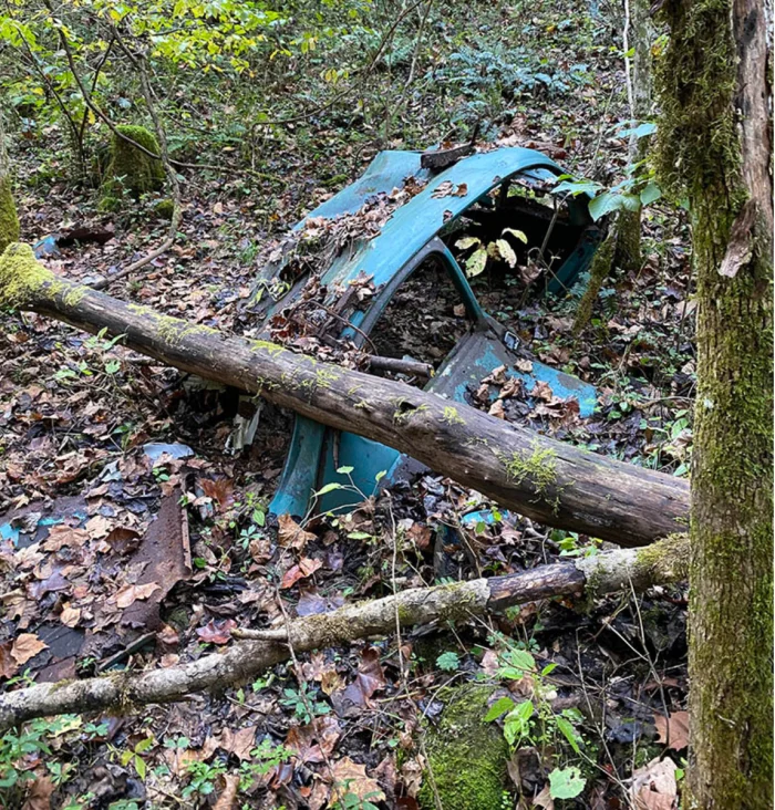Также в лесу можно найти остатки автомобиля. Как он сюда попал?
