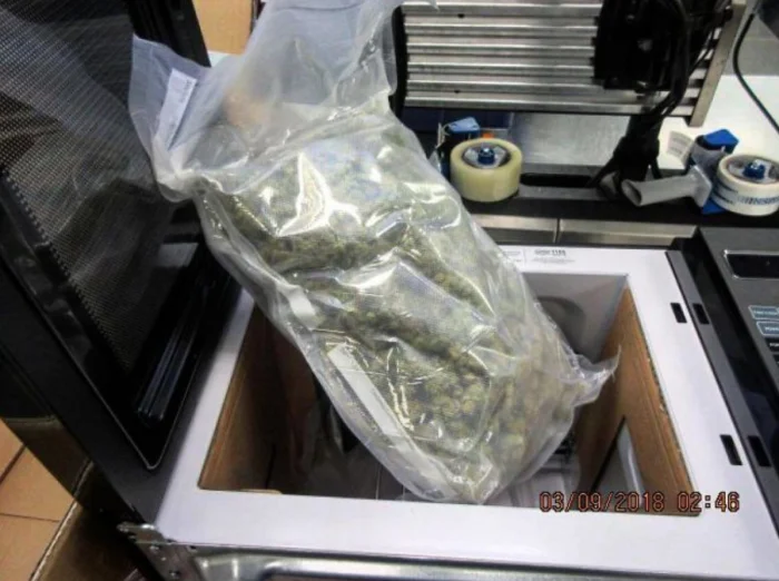 Пакет с марихуаной, спрятанный внутри микроволновки