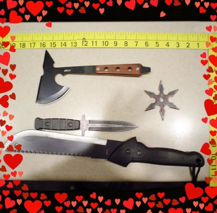 Все эти острые и опасные предметы были обнаружены у одного и того же человека
