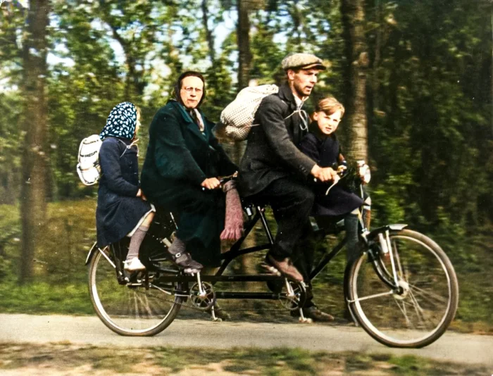 В мае 1940 года, когда Германия начала своё вторжение в Бельгию, Нидерланды и Францию, миллионы людей стали беженцами, пытаясь спастись от наступающих немецких войск. Одним из самых трогательных примеров этой массовой эвакуации стала история бельгийской семьи, которая выбрала тандем — двухместный велосипед — как средство передвижения в безопасную Францию.