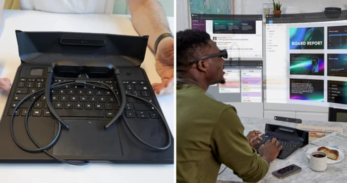 Изображение передается через специальные очки, благодаря чему окружающие не смогут узнать, чем вы на самом деле занимаетесь — работаете или смотрите котиков.