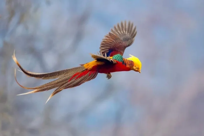Золотой фазан - птица рода воротничковых фазанов, один из самых ярких представителей семейства фазановых. Золотые фазаны обитают в горных районах центральной части Китая на высоте до 2000 метров над уровнем моря, в горных лесах юго-восточного Тибета и на севере Ассама.