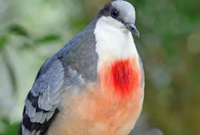 На самом деле с птицей всё в порядке. Лусонский кровавогрудый куриный голубь - птица из рода куриных голубей, эндемик острова Лусон имеет удивительную заметную особенность - яркое красное пятно на груди, напоминающее кровоточащую рану.