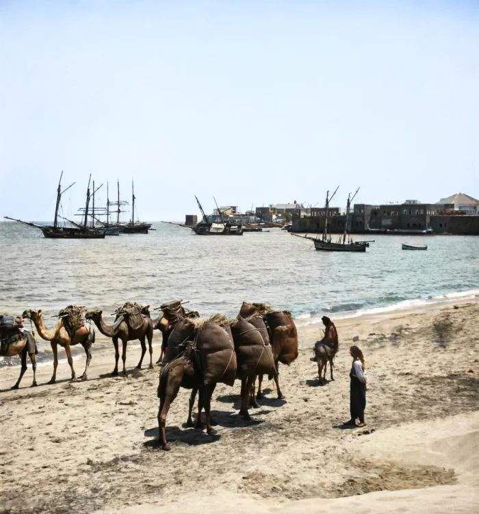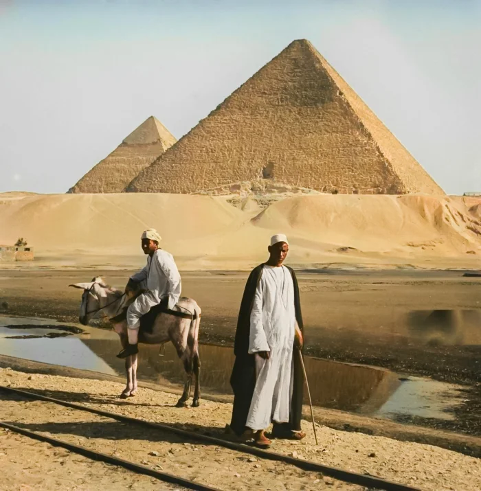 Бедуины у Великой пирамиды Гизы. Египет, 1910 год.