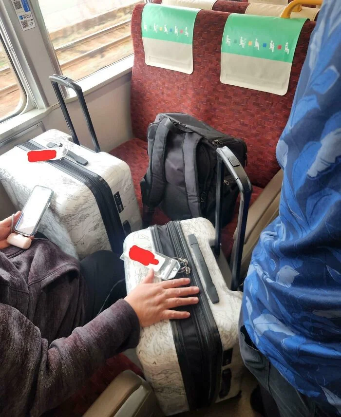7. На японском поезде пассажир занял четыре места своим багажом, в то время как пожилые люди стояли