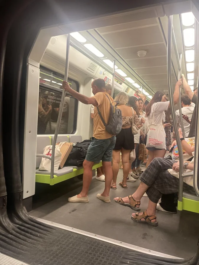 28. Мужчина в метро Валенсии занял несколько мест своими сумками