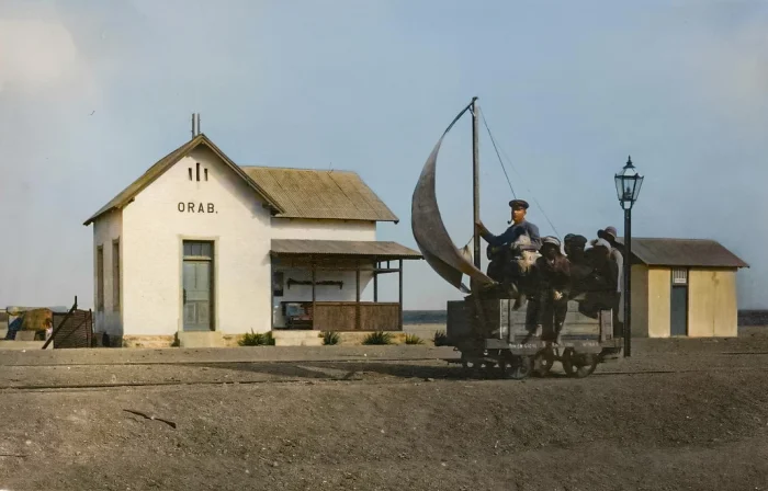 Сильные ветры на плоском пустынном рельефе современной Намибии способствовали использованию таких необычных средств передвижения на железнодорожных путях этой немецкой колонии.