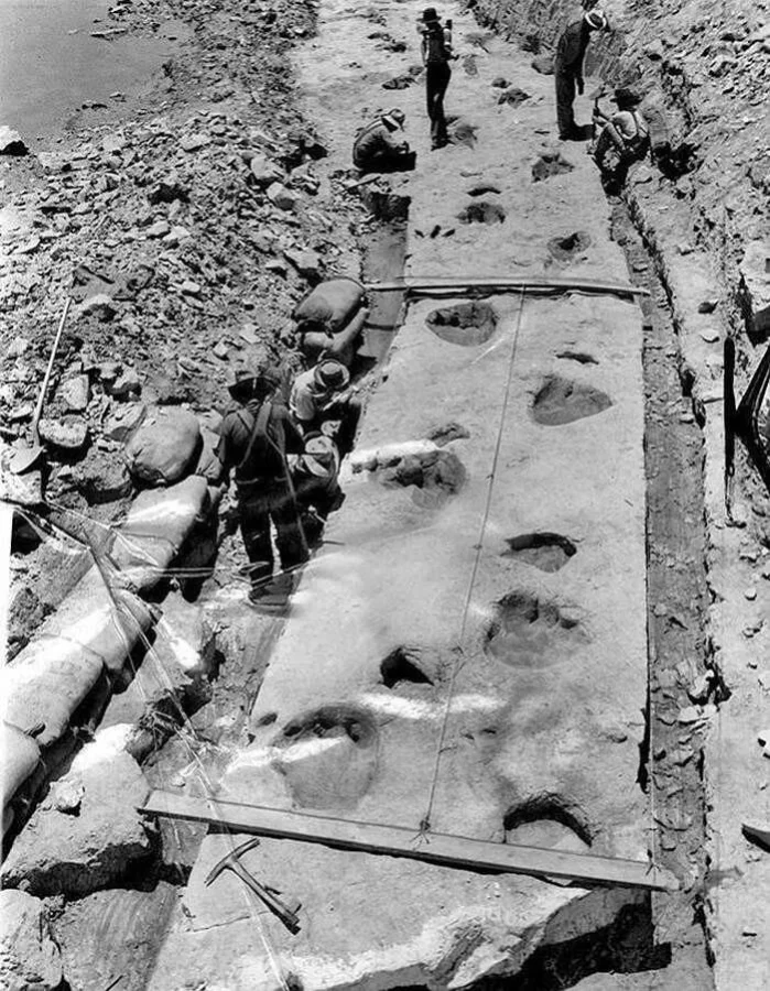 8. Раскопки следов динозавров в русле реки Палукси рядом с Глен Роуз, 1952 год