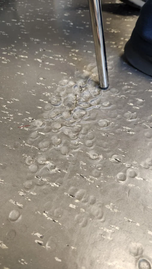 Стулья в приемной оставили заметные следы на полу за долгие годы эксплуатации.