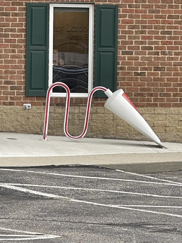 У этой стоматологической клиники установлена велосипедная парковка в форме тюбика с зубной пастой.