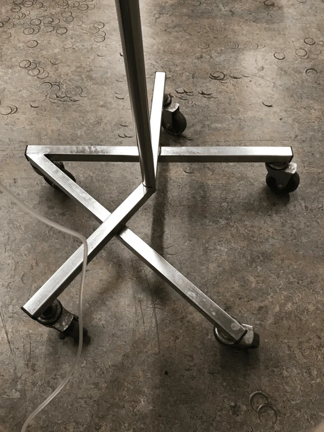 Стойка для внутривенных вливаний в больнице имеет необычное расположение ножек.