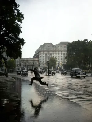 Прыжок через лужу возле Гайд-парка. Лондон, 1939 год.