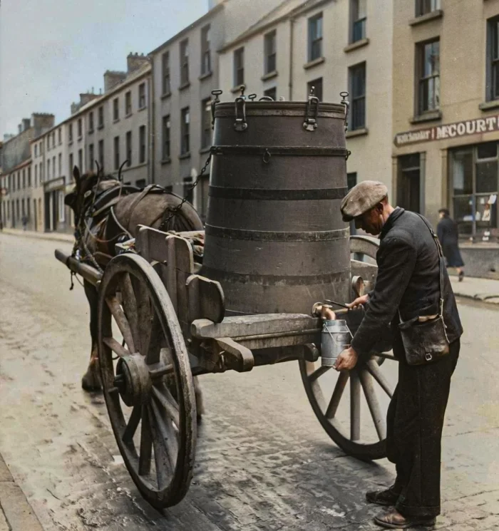 Музыкальный молочник на улицах Лондона, 1930 год.