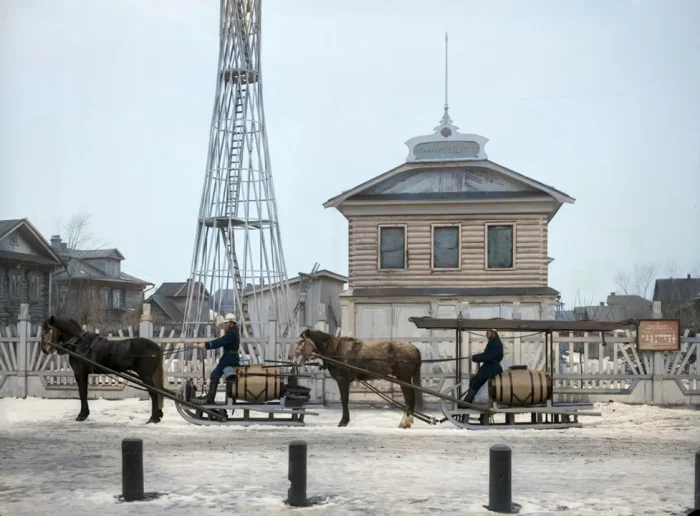 На фотографии – первая башня сетчатой формы по проекту Владимира Шухова. Самая известная башня Шухова, расположенная на Шаболовке в Москве, начала строиться только в 1920 году.