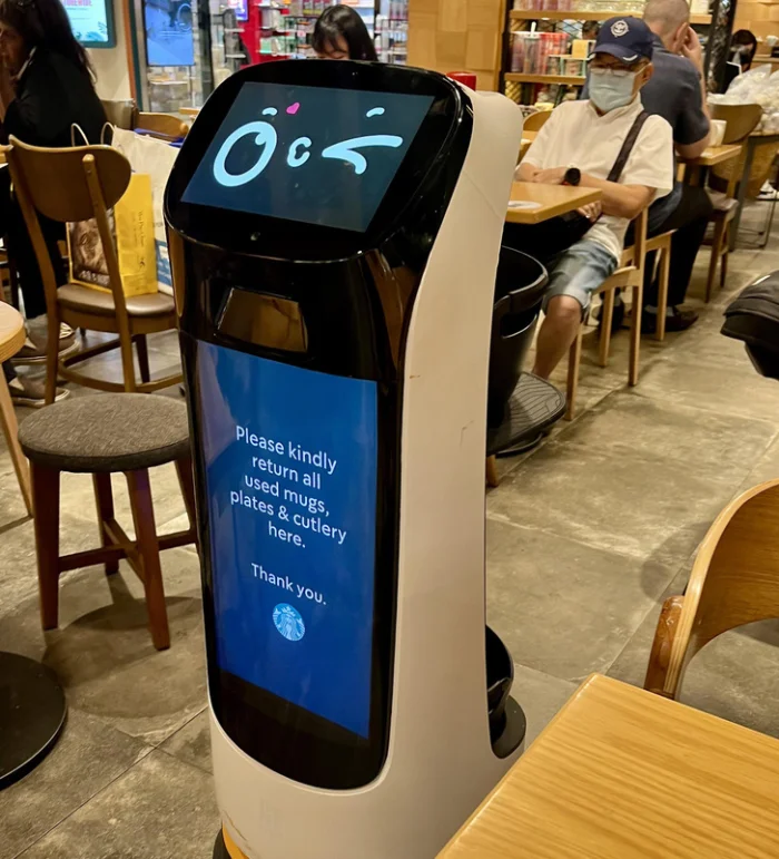 «В кофейне Сингапура установлены роботы, которые помогают клиентам убирать грязную посуду»