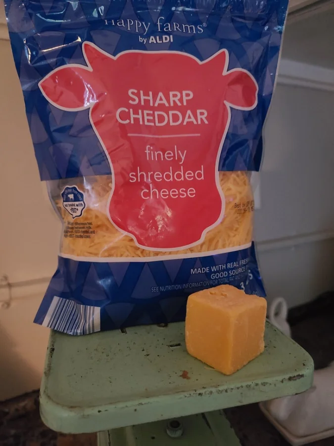 «В упаковке тертого чеддера мы нашли этот кусочек сыра»