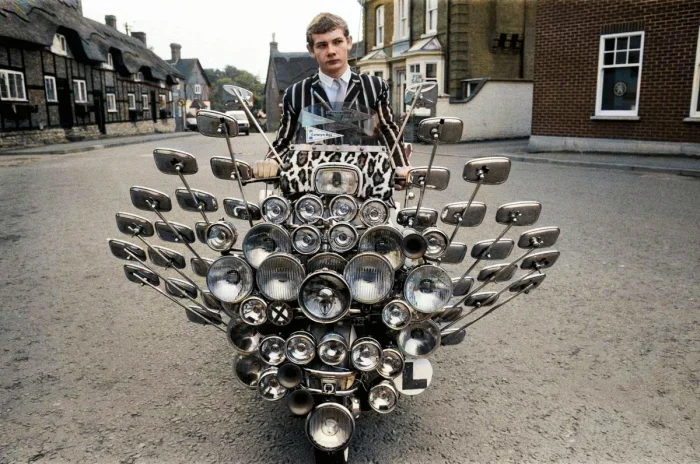 17-летний парень со своим итальянским мопедом Vespa. Англия, 1983 год.