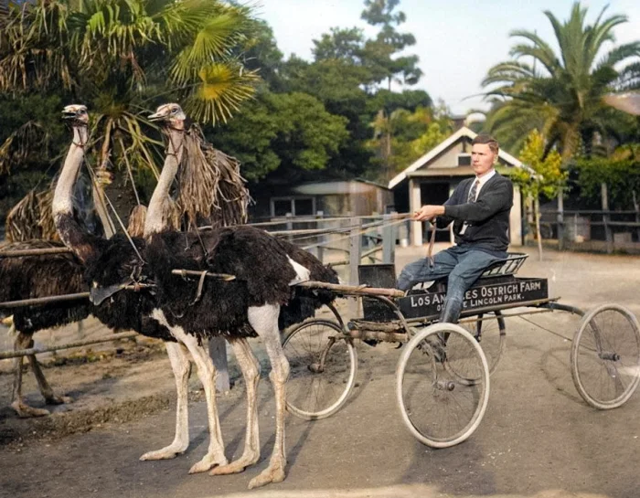 Некоторые бизнесмены, сталкивающиеся с высокими расходами на содержание этих птиц (стоимость одного страуса достигала $1000 в 1910-х годах, что эквивалентно примерно $30 000 сегодня), начали искать альтернативные источники дохода. Они решили использовать страусов не только для получения перьев, но и как средство передвижения, подобно традиционным лошадям и верблюдам.