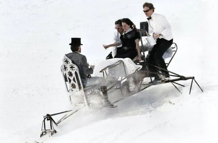 Лыжные гонки, клуб Dangerous Sports Club. Санкт-Мориц, Швейцария, 1983 год.