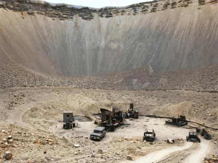 Кратер оставшийся после подземного ядерного взрыва «Sedan», 1960–е годы, Невада Самый большой искусственный кратер в США.