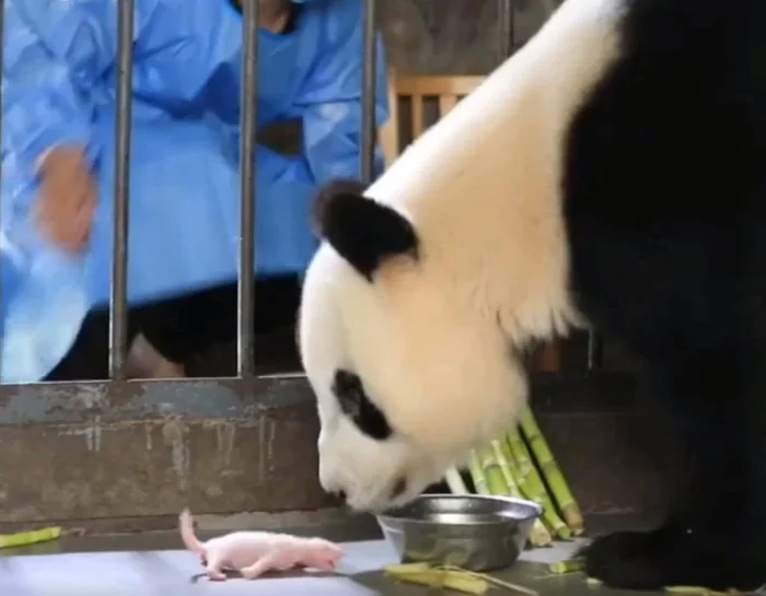 9. Мама-панда и её новорождённый детёныш