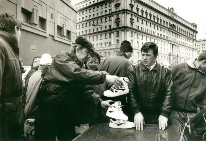 1. Фарцовщики у магазина «Берёзка» на Васильевском острове, Ленинград, 1991 г