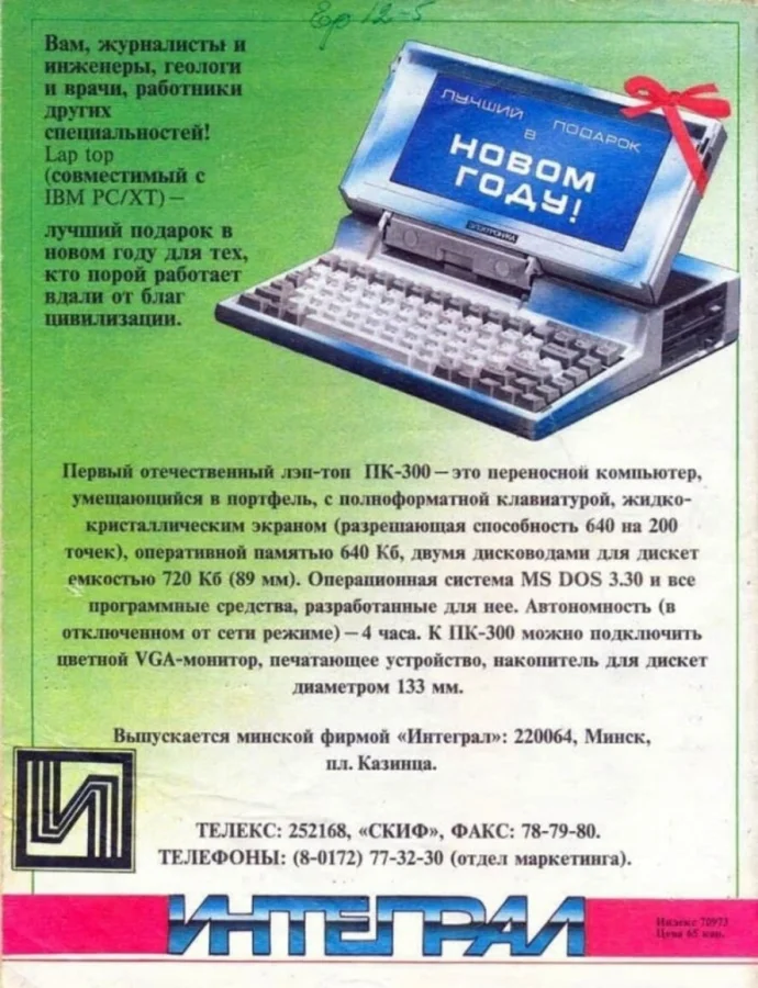 21. Отечественный ноутбук ПК-300 — идеальный новогодний подарок. Реклама в журнале «Техника молодежи», декабрь 1991 года.