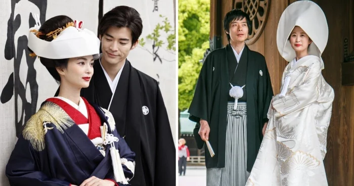 Японские невесты традиционно надевают белоснежное кимоно, которое может иметь различные цветовые вариации. Дополняет образ шёлковый головной убор под названием tsunokakushi.