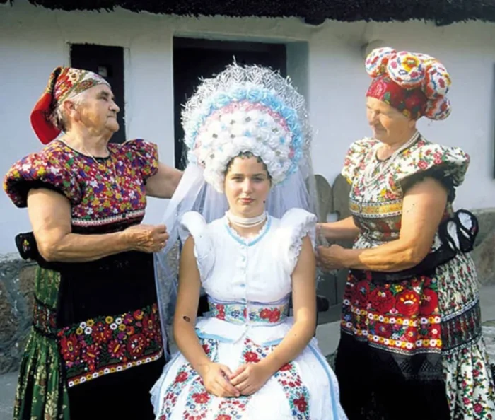 Главная особенность венгерского традиционного платья — обилие цветочных узоров. Под свой наряд невеста, как правило, надевает несколько юбок (для придания пышности). Завершает образ шикарный головной убор из зелени, цветов и колосьев. Здесь вы можете посмотреть фотографии нетипичных свадебных платьев, которые решились надеть смелые невесты дабы сделать своё торжество незабываемым.