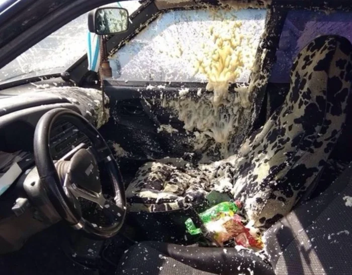 Когда оставили баллончик монтажной пены в машине в сорокаградусную жару