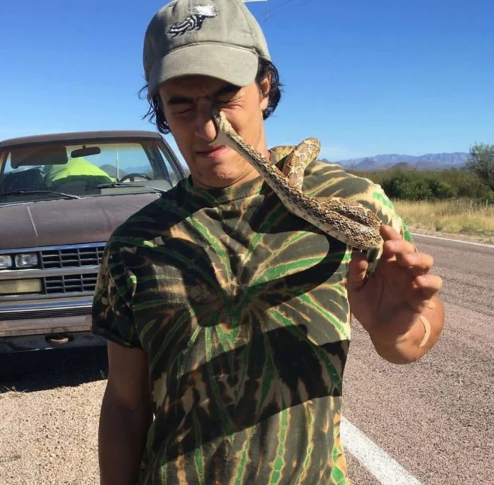 Когда придет в голову идея сделать классное фото со змеей, найденной на обочине