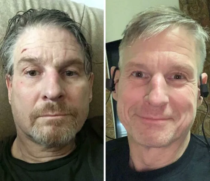 Эти снимки наглядно показывают разницу человека в депрессии и уже здорового: всего лишь спустя год