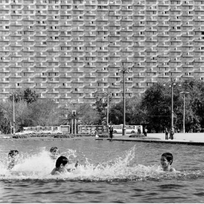 Дети купаются в фонтане на проспекте Мира, Москва, 1977 год
