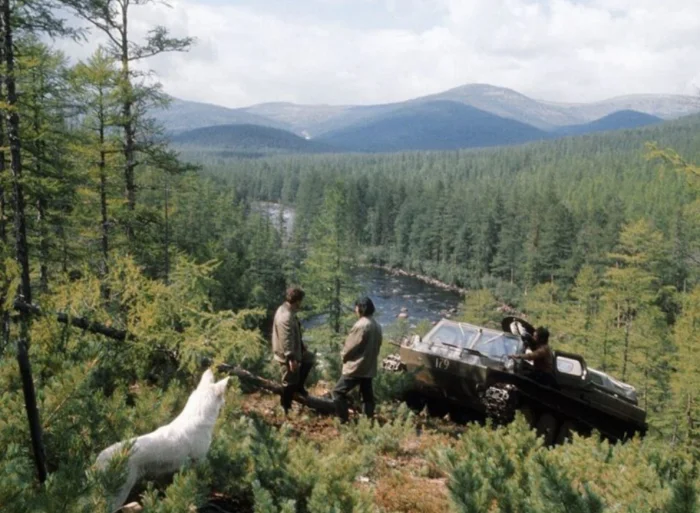 Изыскатели на берегу реки Хани. Когда-то недалеко от этого места построят станцию Олондо, Читинская область, СССР, 1977-й