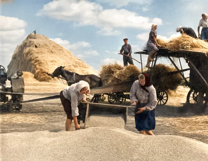 Уборка урожая в колхозе имени Чкалова близ села Трушки. Украинская ССР, 1957 год.