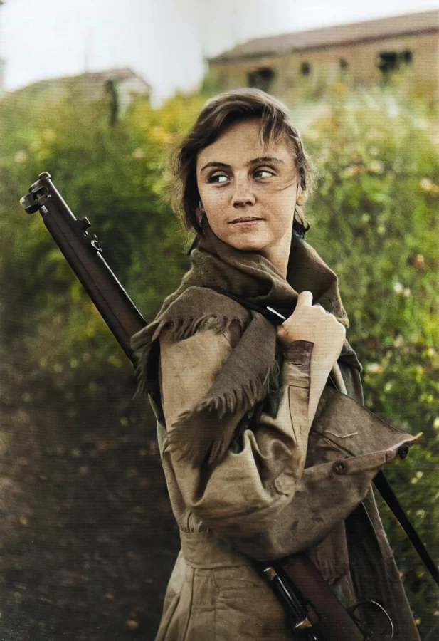 Испанка из армии лоялистов в Гражданской войне, вооруженная британским ружьем "Lee Enfield", Испания, ок. 1936-1939 г.