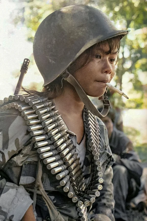 Молодая девушка, сражающаяся на стороне режима Лон Нола против Красных кхмеров, гражданская война в Камбодже, 1970-е.