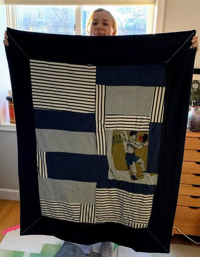 Собралась куча футболок в плохом состоянии. Теперь они стали покрывалом