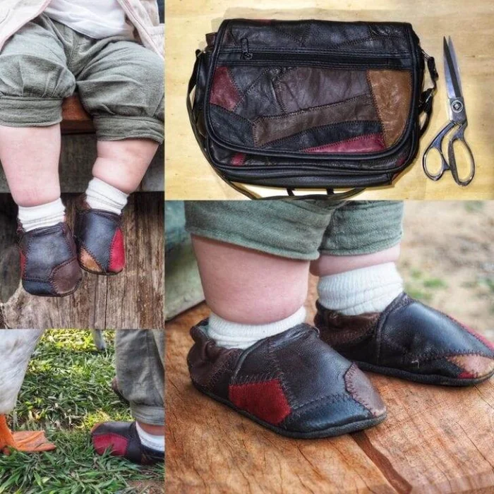 Из ненужной кожаной сумки получилась отличная обувь для сына