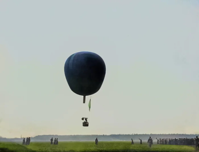 Воздушный шар Императорского Всероссийского аэроклуба в полете. Санкт-Петербург, 1910 год.