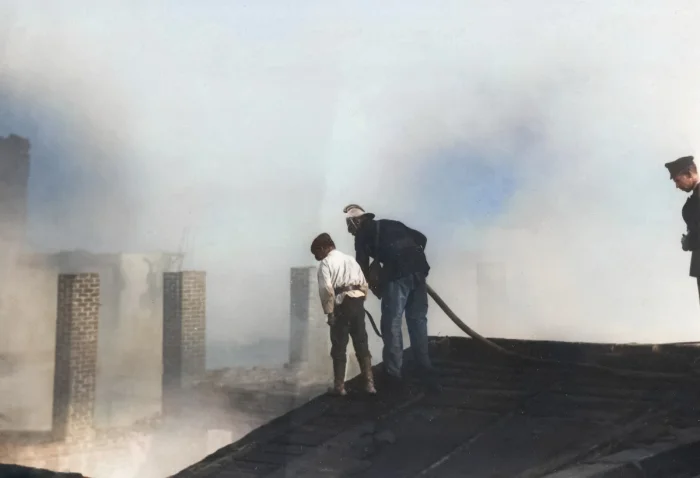 Пожарные на крыше дома. Санкт-Петербург, 1914 год.