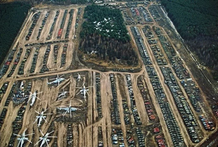 16. Стоянка зараженной радиацией техники, участвовавшей в ликвидации аварии на ЧАЭС, Украина, 1993 год