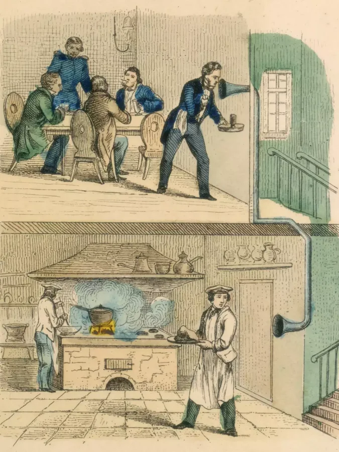 Это насадка от коммуникационной трубы в викторианские времена. Труба из металла монтировалась в стену, и можно было говорить с кухней из кабинета, к примеру. При этом, это еще модель со свистком - надо подуть в нее, и на другом конце раздается свисток, собеседник снимает трубку (поворачивая ручку), и вы говорите.