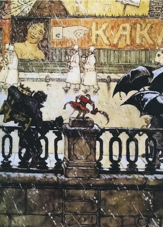 иллюстрация к «Шуту» Он пытался поступить в Академию художеств, но попытка не увенчалась успехом.